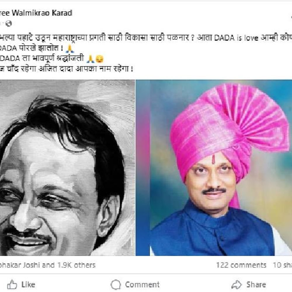 नाशिक जिल्हयातील दिंडोरी येथील राष्ट्रवादी काँग्रेसचे निष्ठावान कार्यकर्ते आणि उपमुख्यमंत्री अजित पवार यांचे कट्टर समर्थक सुदाम बोडके (वय 63) यांचे हृदयविकाराच्या तीव्र झटक्याने निधन झाले आहे. आपल्या लाडक्या नेत्याच्या अकाली निधनाचा धक्का सहन न झा...