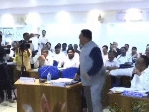 कर्नाटकात काँग्रेसच्या एमएलसीने भाजप आमदाराला मुक्का मारला:बैठकीत जमिनीच्या ताब्यावरून शिवीगाळ, मंत्र्यांनी प्रकरण शांत केले